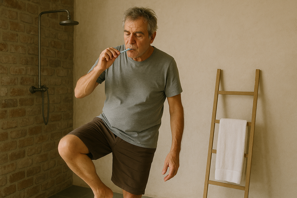 רובנו מצחצחים שיניים בלי לחשוב יותר מדי, אבל רגע קטן של עמידה על רגל אחת יכול לתת לנו תמונת מצב אמיתית על הגוף ועל הבריאות הכללית.