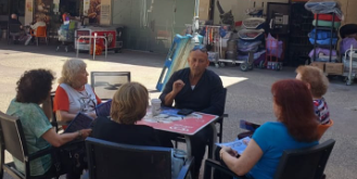 צביקה ברבי בשיחה עם תושבי השכונה ברוממה